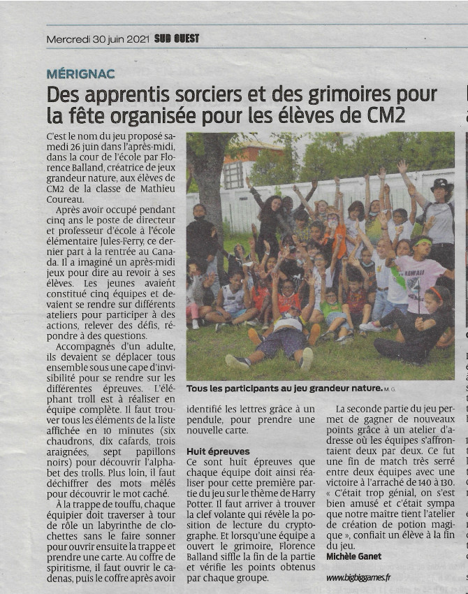 Article sud ouest du 30 Juin 2021
