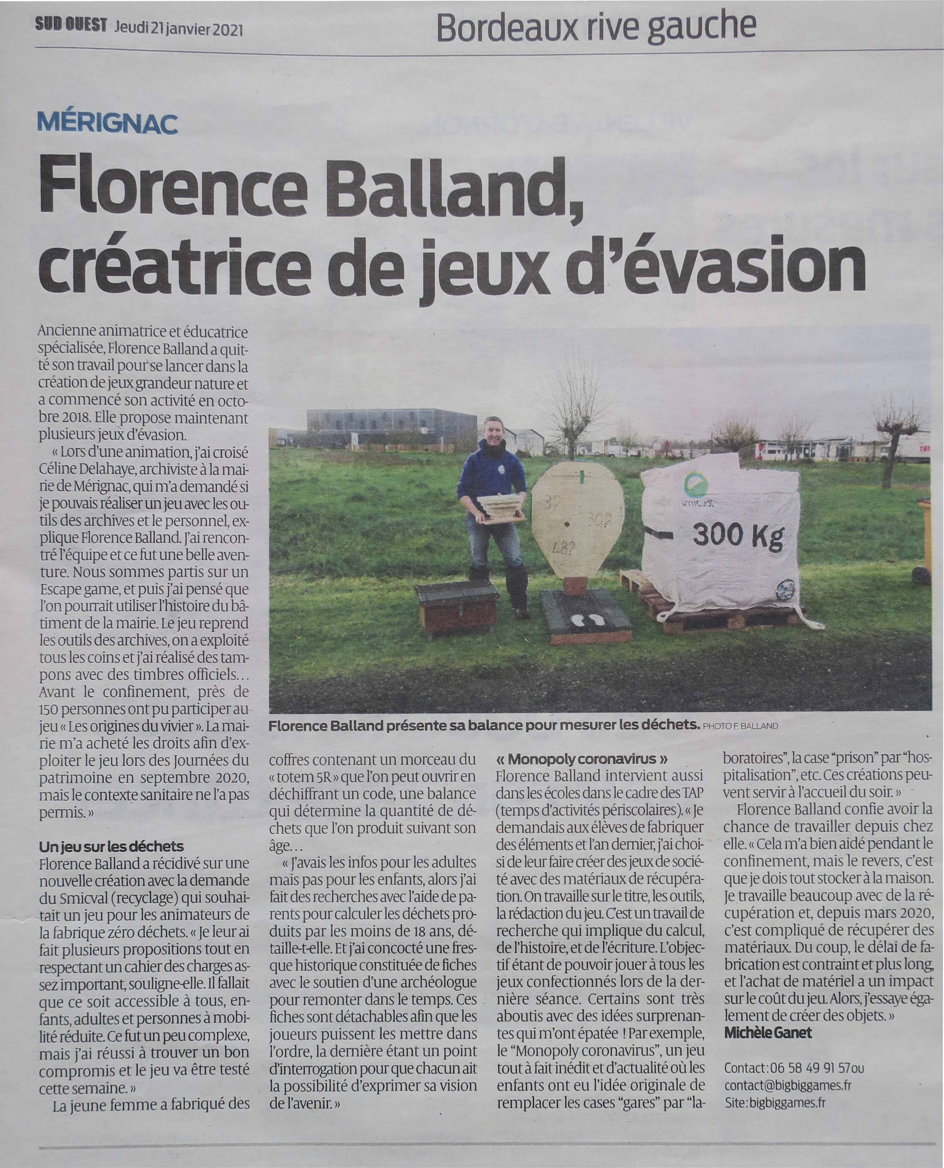 Article sud ouest du 21 Janvier 2021